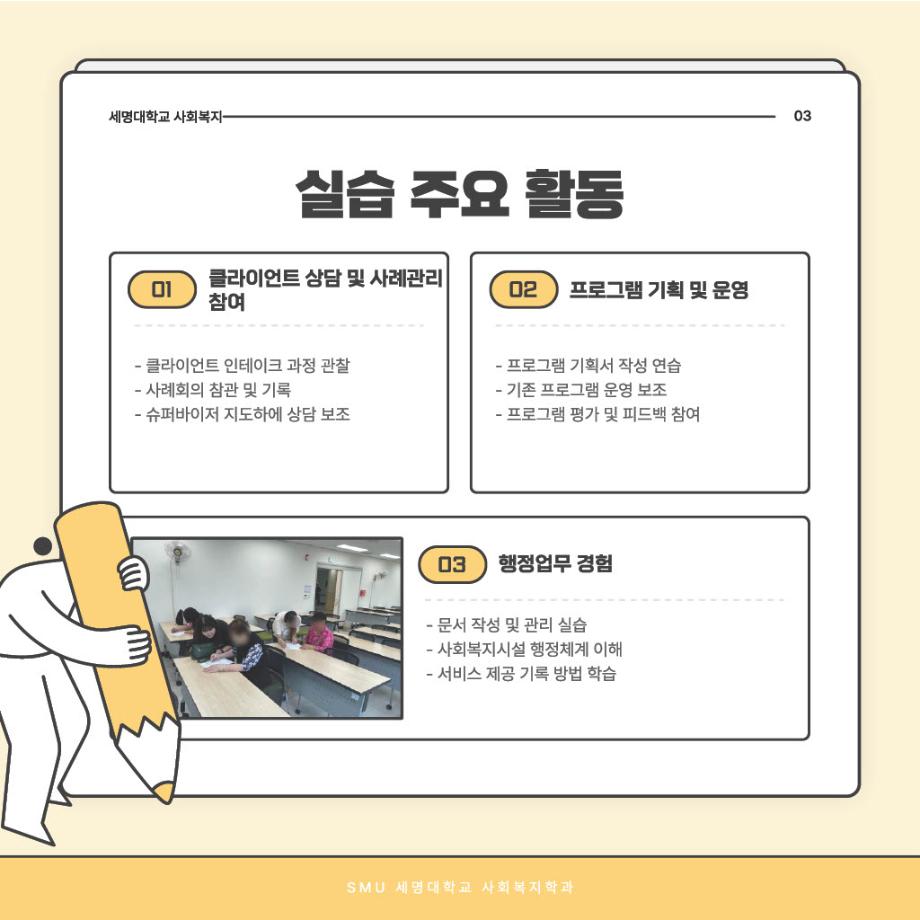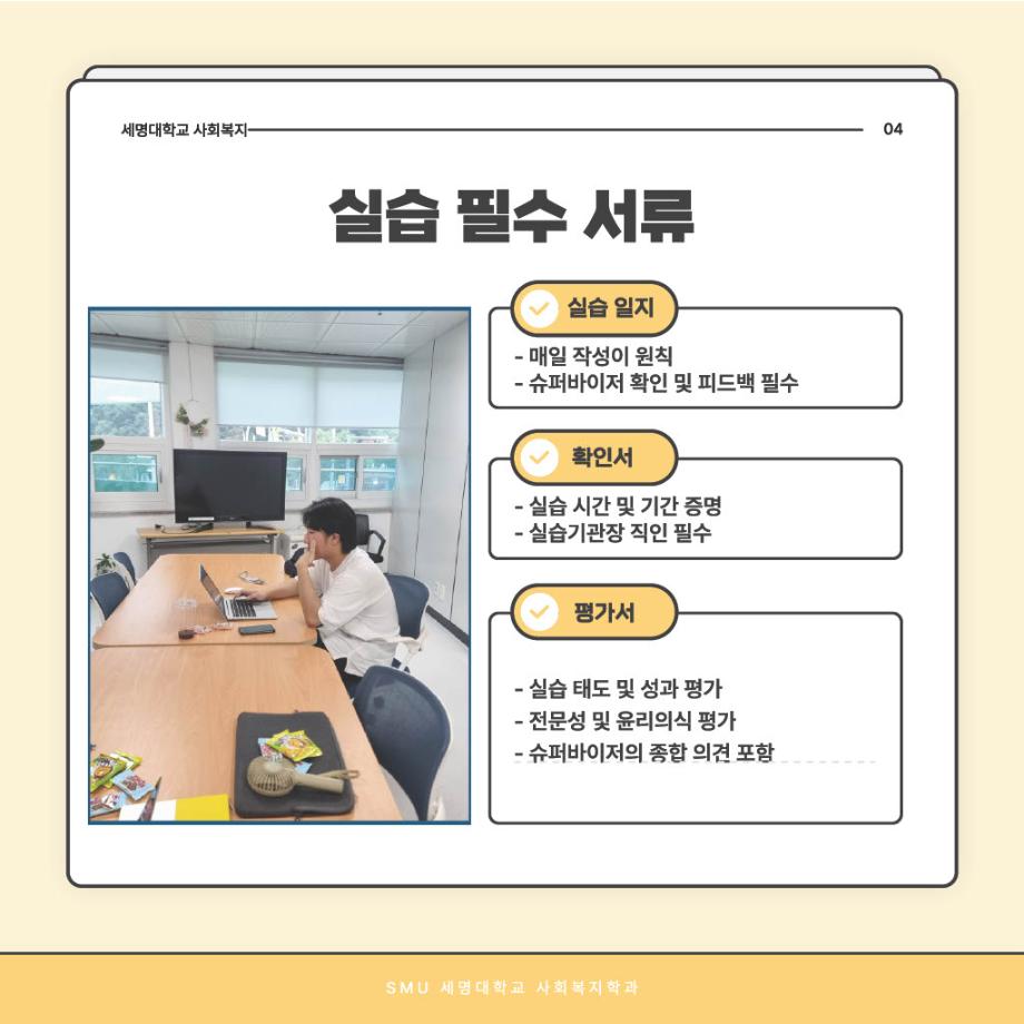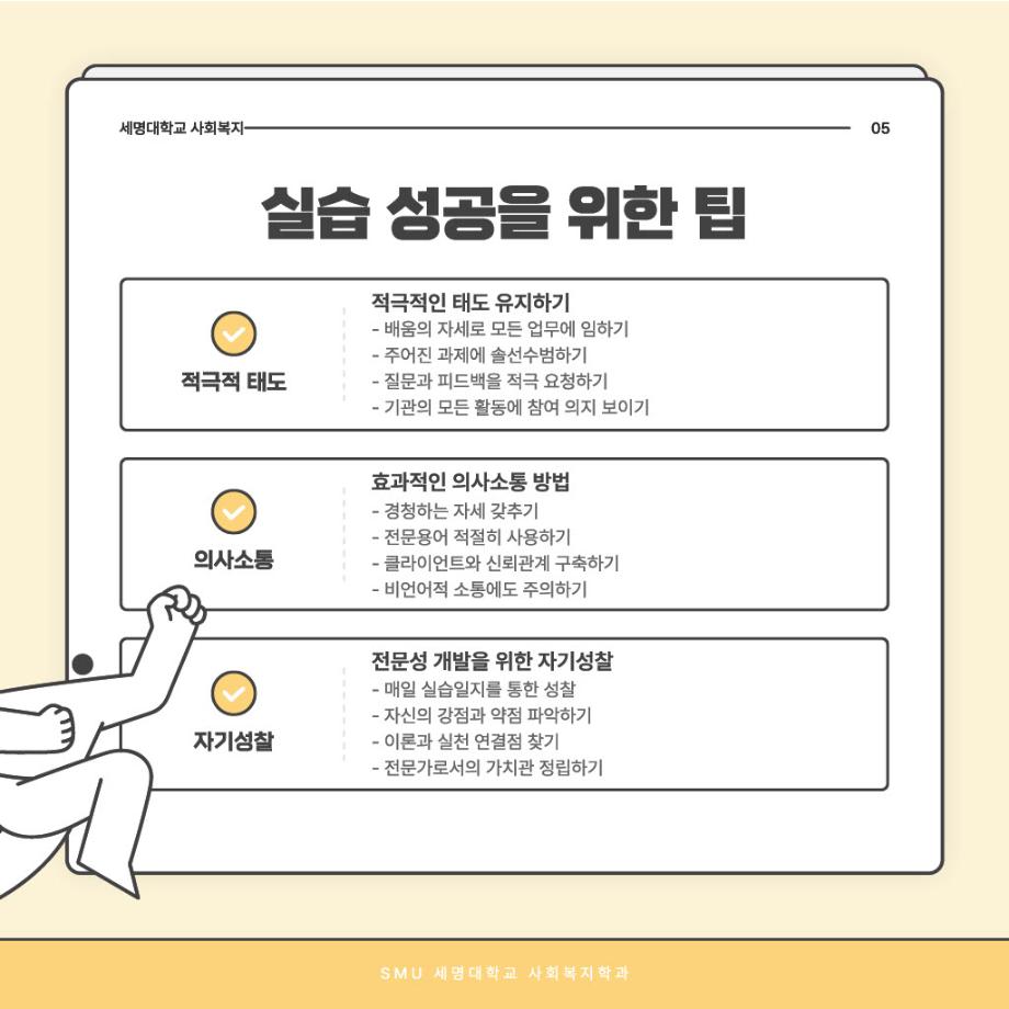 본문 시작 홈으로 커뮤니티 학과소개 교수소개 교육과정 현장실습 및 취업정보 커뮤니티 홈페이지가이드 학생 소통 광장 학과공지 학사일정 학생회 동아리 학생 소통 광장 포토갤러리 전공자료실 서식자료실 학생 소통 광장 페이스북 트위터 프린트 사회복지현장실습 과정 안내 사회복지학과 931 2025-09-03 오늘은 '사회복지현장실습 과정 안내'편입니다~ 목록 이전사회복지현장실습 알고 가자! 다음 중간고사 응원 간식나눔 담당부서 : 사회복지학과 담당자 : - 연락처 : 043-649-1799 최종수정일 : 2024-10-26 만족도조사 만족도 조사 이 페이지에서 제공하는 정보에 대하여 만족하시나요? 매우만족 만족 보통 불만족 매우불만족