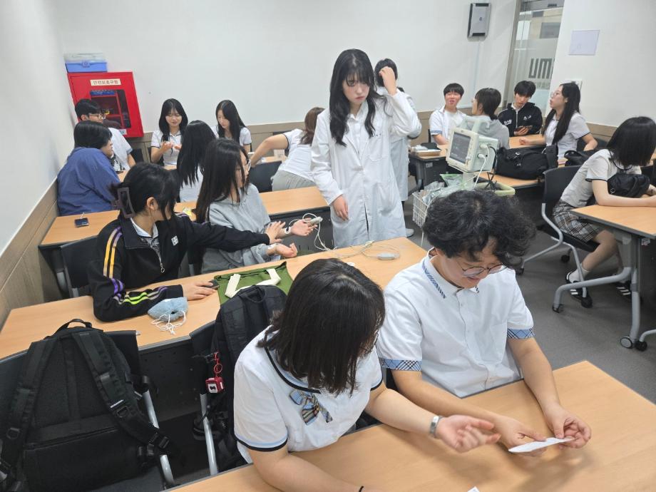 본문 시작 홈으로 커뮤니티 학과소개 교수소개 교육과정 학과소식 학과특성화 사업 커뮤니티 홈페이지가이드 포토갤러리 학사일정 포토갤러리 학생회 학과동아리 학과 취업정보 동창회 학과운영개선의견 발전기금 포토갤러리 페이스북 트위터 프린트 세명대학교 간호학과 전공 체험 프로그램_제천제일고등학교 간호학과 1379 2025-05-26 2025년 5월 20일(화), 제천제일고등학교 학생들이 미래의 간호사를 꿈꾸며 설레는 발걸음으로 세명대를 방문하였습니다. 시뮬레이션센터에서 진행된 전공 소개, 실습실에서의 근육주사, 혈당측정, 심전도 실습 체험까지 짧은 시간이었지만 많은 것을 배우고 느낄 수 있었던 소중한 시간이 되었기를 바랍니다. 오늘의 체험이 여러분의 진로를 한걸음 더 구체적으로 그려보는 계기가 되었기를 진심으로 응원합니다. 목록 이전세명대학교 간호학과, KOICA 민관협력 인큐베이팅 프로그램(아카데미 파트너), 몽골 울란바토르 현지 지역조사 성료 다음 29대 학생회 [파도] 기말고사 응원 간식 나눔 담당부서 : 간호학과 담당자 : - 연락처 : 043-649-1357 최종수정일 : 2024-10-26 만족도조사 만족도 조사 이 페이지에서 제공하는 정보에 대하여 만족하시나요? 매우만족 만족 보통 불만족 매우불만족