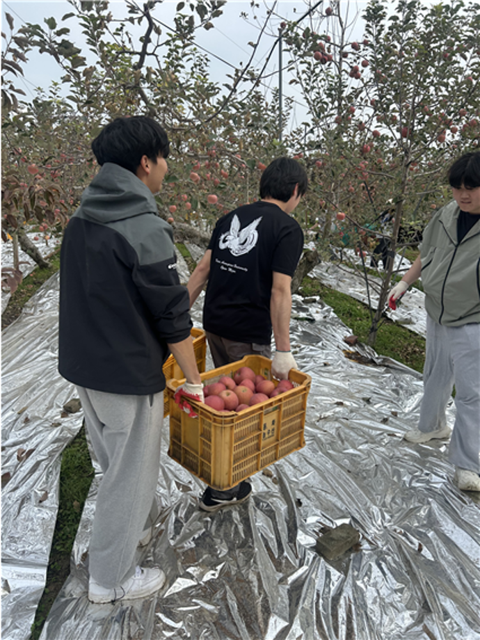 본문 시작 홈으로 커뮤니티 학과소개 교수소개 교육과정 학과소식 학과특성화 사업 커뮤니티 홈페이지가이드 포토갤러리 학사일정 포토갤러리 학생회 학과동아리 학과 취업정보 동창회 학과운영개선의견 발전기금 포토갤러리 페이스북 트위터 프린트 세명대학교 간호학과, 농촌 일손돕기 봉사활동 🍎 간호학과 749 2025-11-11 세명대학교 간호학과 1학년 학생들은 11월 8일, 제천 지역 사과 농가를 찾아 농촌 일손돕기 봉사활동을 진행하였습니다. 학생들은 사과 수확을 도우며 농민들의 노고를 이해하고, 지역사회와 함께하는 나눔의 의미를 되새겼습니다. 이번 봉사활동을 통해 간호학과 학생들은 더불어 사는 공동체의 가치를 배우고 따뜻한 마음을 실천하는 시간을 가졌습니다. 목록 이전포항 동지여고 간호학과 전공체험 다음 세명대학교 간호학과 제30회 나이팅게일 선서식 🕯️ 담당부서 : 간호학과 담당자 : - 연락처 : 043-649-1357 최종수정일 : 2024-10-26 만족도조사 만족도 조사 이 페이지에서 제공하는 정보에 대하여 만족하시나요? 매우만족 만족 보통 불만족 매우불만족