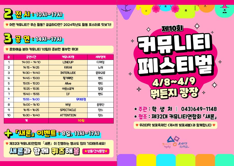 본문 시작 홈으로 학과생활 학과소개 교수소개 교과과정 학과생활 홈페이지가이드 사진게시판 공지사항 사진게시판 전공자료실 동아리 학과행사 사진게시판 페이스북 트위터 프린트 [학생처] 제10회 커뮤니티 페스티벌 산업디자인학과 1108 2025-04-02 목록 이전[인권센터] 2025학년도 학생대상(대학원생 포함) 폭력예방교육 다음 [CHARM케어상담센터] 2025학년도 1학기 자살예방교육 실시 담당부서 : 산업디자인학과 담당자 : - 연락처 : 043-649-1436 최종수정일 : 2024-10-26 만족도조사 만족도 조사 이 페이지에서 제공하는 정보에 대하여 만족하시나요? 매우만족 만족 보통 불만족 매우불만족