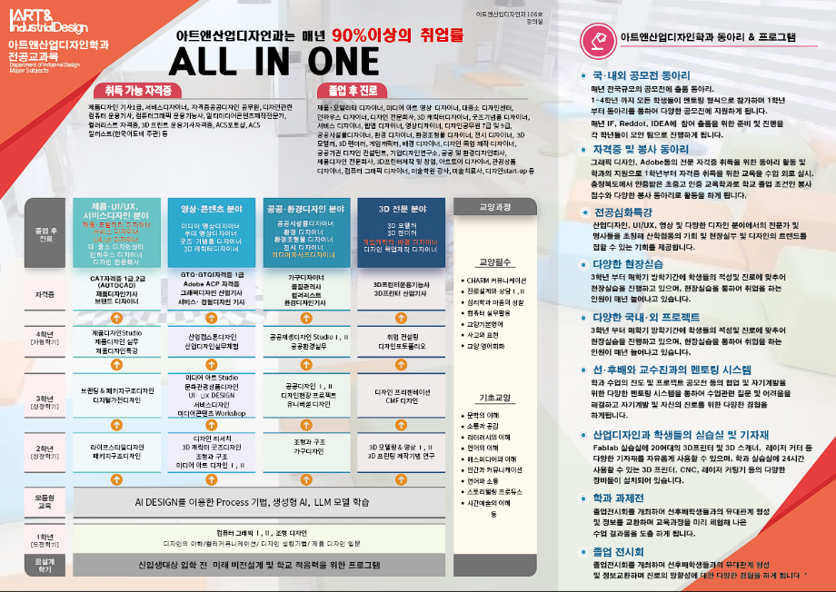 본문 시작 홈으로 학과생활 학과소개 교수소개 교과과정 학과생활 홈페이지가이드 사진게시판 공지사항 사진게시판 전공자료실 동아리 학과행사 사진게시판 페이스북 트위터 프린트 [브로셔] 산업디자인학과가 아트&산업디자인학과로 새롭게 태어납니다. 산업디자인학과 674 2025-06-12 목록 이전[공모전] 제60회 대한민국 디자인 전람회 다음 [배낭여행] 2025 세명대학교 자기설계 해외배낭연수 발대식 담당부서 : 산업디자인학과 담당자 : - 연락처 : 043-649-1436 최종수정일 : 2024-10-26 만족도조사 만족도 조사 이 페이지에서 제공하는 정보에 대하여 만족하시나요? 매우만족 만족 보통 불만족 매우불만족