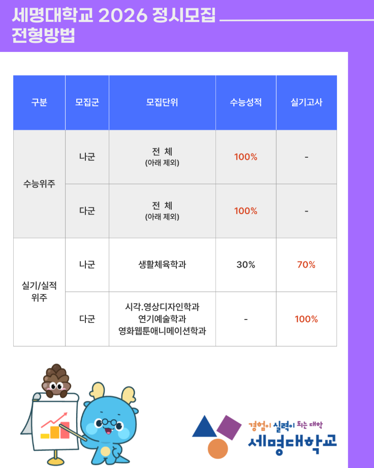 본문 시작 홈으로 학과생활 학과소개 교수소개 교과과정 학과생활 홈페이지가이드 사진게시판 공지사항 사진게시판 전공자료실 동아리 학과행사 사진게시판 페이스북 트위터 프린트 [정시모집] 2026 세명대학교 정시모집 전형방법 산업디자인학과 205 2025-12-29 목록 이전[수시모집] 2026학년도 수시모집 충원합격자 발표안내 다음 [학생처] 2025학년도 동계방학 편의시설 운영 안내(식당, 편의점, 카페, 웰니스센터 헬스장, 안경점, 서점, 미용실) 담당부서 : 산업디자인학과 담당자 : - 연락처 : 043-649-1436 최종수정일 : 2024-10-26 만족도조사 만족도 조사 이 페이지에서 제공하는 정보에 대하여 만족하시나요? 매우만족 만족 보통 불만족 매우불만족